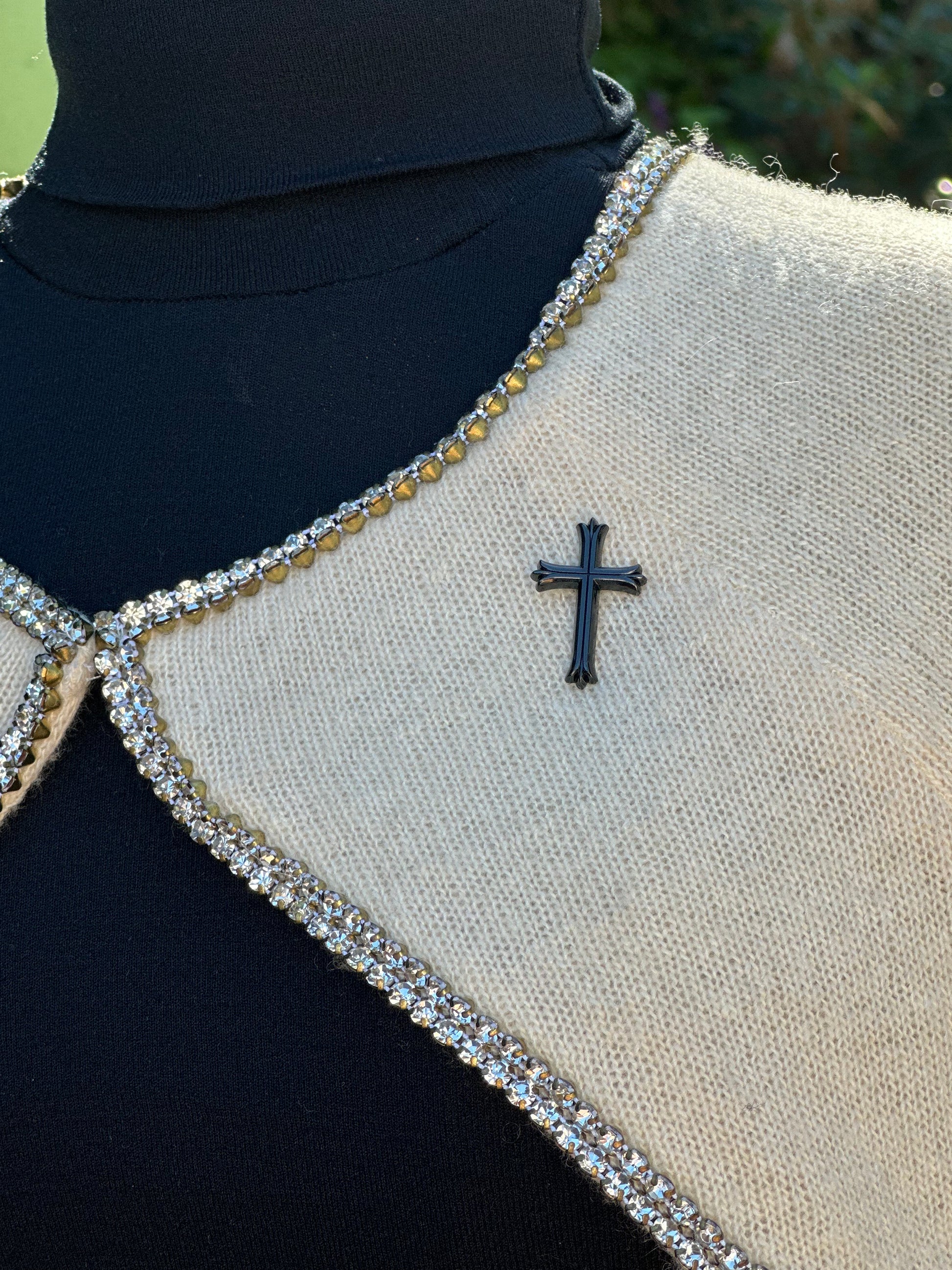 This elegant cross lapel pin showcases exceptional craftsmanship through its hand-polished nickel finish and intricately fluted design. The sculpted geometry creates dynamic light-catching surfaces that reveal subtle depth and movement with every angle.Perfect for those seeking a refined accessory that expresses personal conviction, aesthetic sophistication, or artistic appreciation—a durable heirloom-quality pin designed to make a lasting impression.